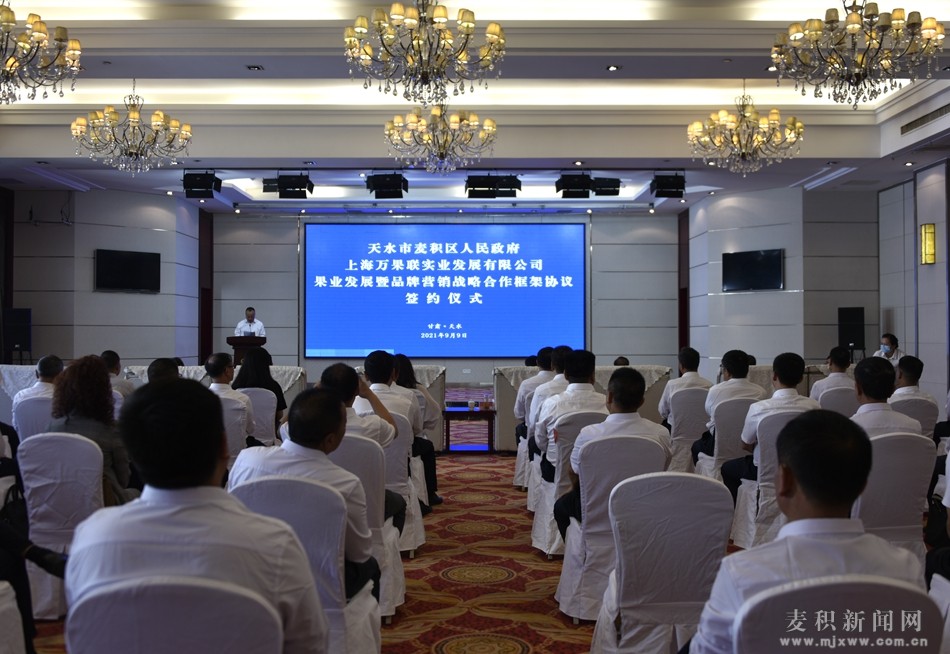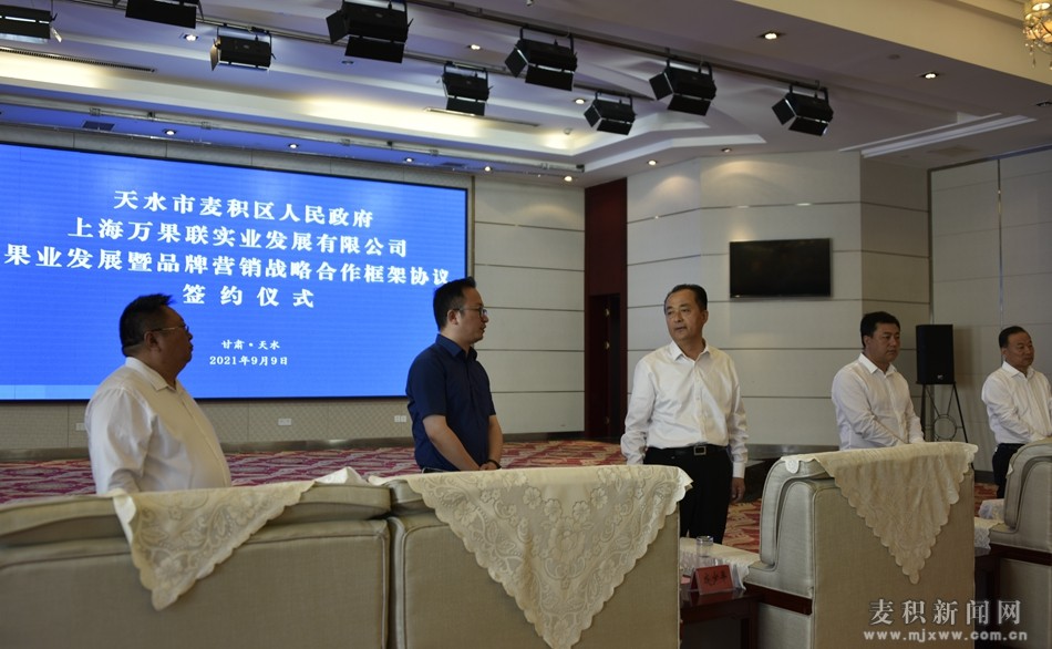 麥積區(qū)融媒體中心訊(記者 王雯 宋倩倩) 9月9日,麥積區(qū)政府與上海萬果聯(lián)實(shí)業(yè)發(fā)展有限公司簽訂果業(yè)發(fā)展暨品牌營(yíng)銷戰(zhàn)略合作框架協(xié)議。市政協(xié)副主席、區(qū)委書記成少平,萬果會(huì)萬果聯(lián)創(chuàng)始人朱勇立,區(qū)委副書記、代區(qū)長(zhǎng)趙虎生,區(qū)人大常委會(huì)主任趙繼文,區(qū)政協(xié)主席高志強(qiáng),萬果聯(lián)實(shí)業(yè)發(fā)展有限公司項(xiàng)目總監(jiān)魏克泉,區(qū)政府副區(qū)長(zhǎng)張樹增出席簽約儀式。區(qū)委副書記霍定明主持簽約儀式。