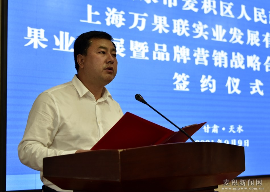 趙虎生在簽約儀式上致辭,代表區(qū)四大組織對(duì)協(xié)議的簽訂表示熱烈的祝賀,向萬果聯(lián)公司長(zhǎng)期以來對(duì)麥積經(jīng)濟(jì)社會(huì)發(fā)展的關(guān)注和支持表示衷心的感謝。他指出,協(xié)議的簽訂,對(duì)于健全完善果品營(yíng)銷網(wǎng)絡(luò),提升“花!碧O果等果品知名度和影響力,做大做強(qiáng)做優(yōu)“花!碧O果等果品產(chǎn)業(yè),促進(jìn)農(nóng)業(yè)增效、農(nóng)民增收、農(nóng)村繁榮具有十分重要的意義。麥積區(qū)將以這次戰(zhàn)略合作框架協(xié)議簽約為契機(jī),進(jìn)一步創(chuàng)新完善服務(wù)保障機(jī)制,積極搭建合作交流平臺(tái),以更加優(yōu)惠的政策、更加優(yōu)良的環(huán)境、更加優(yōu)質(zhì)的服務(wù),全力推動(dòng)相關(guān)合作事項(xiàng)盡快落地實(shí)施,努力實(shí)現(xiàn)互利共贏、共同發(fā)展。