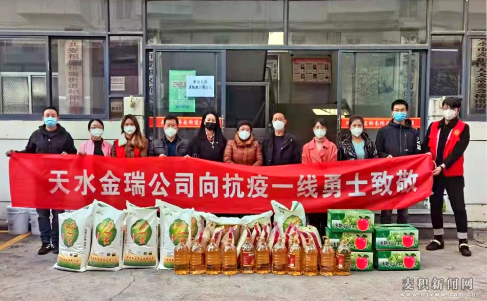 麥積區(qū)融媒體中心訊(特約記者 竇耀輝)疫情無(wú)情,人間有愛。連日來(lái),愛心企業(yè)天水金瑞電子技術(shù)有限責(zé)任公司總經(jīng)理周小霞帶著對(duì)英勇無(wú)畏的“逆行者”的崇敬之情,先后來(lái)到麥積區(qū)橋南街道辦事處、區(qū)住建中心、區(qū)民樂保障房有限公司、區(qū)職業(yè)中專,為堅(jiān)守一線的疫情防控工作人員、志愿者、留守師生等捐贈(zèng)了一批富士蘋果、大米、面粉、食用油、方便面等愛心物資,助力疫情防控。
