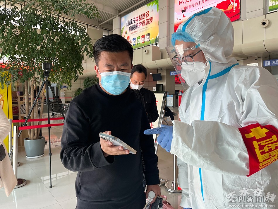 3月8日下午,在天水機場記者看到,一架航班緩緩降落,旅客們下機后主動向工作人員出示48小時核酸檢測陰性證明,在掃描機場場所碼、通過健康碼人證核驗測溫一體機后有序走向航站樓方向。工作人員則對托運行李等進(jìn)行集中消毒處理。
