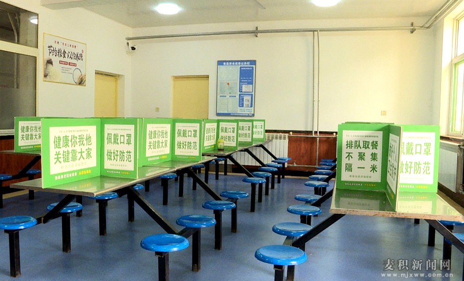 為保證學(xué)生安全就餐,學(xué)校積極采取防控措施,進(jìn)行了全方位的消毒工作。餐廳內(nèi),工作人員進(jìn)行消毒工作的復(fù)查,每張餐桌上安裝有隔板,方便學(xué)生安全就餐。在餐廳的地面上,標(biāo)出了兩條路線,每條路線都能經(jīng)過洗手池,確保學(xué)生在做好手部衛(wèi)生后就餐。利橋中心學(xué)校食堂工作人員黃海生說:“我們對食堂進(jìn)行全面的消殺,要求學(xué)生飯前洗手,飯桌上設(shè)置了隔離牌,讓專人專坐,不能聚集、談話、玩耍,學(xué)生的碗筷我們是進(jìn)行統(tǒng)一的消毒,有專門的消毒柜。”