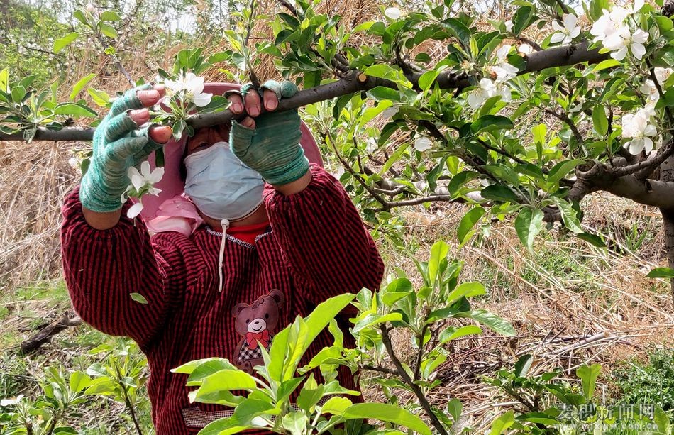 俗話說,蘋果花兒是個寶,春花秋實要管好。疏花最好疏花蕾,節(jié)約營養(yǎng)效率高。疏完背上疏背下,再疏弱花晚茬花。走進伯陽鎮(zhèn)曹石村蘋果園,一片片素白淡雅的蘋果花擠滿枝頭,為了搶抓有利時間,一大早果農(nóng)趕著給果樹疏花、打藥。正在給果樹疏花的伯陽鎮(zhèn)曹石村村民溫保蘭笑著說:“我把自己家的蘋果花疏完之后,就來到合作社打工掙錢補貼家用,也有人教我們技術(shù)。我們不但把錢掙到手了,還學(xué)到了技術(shù)!
