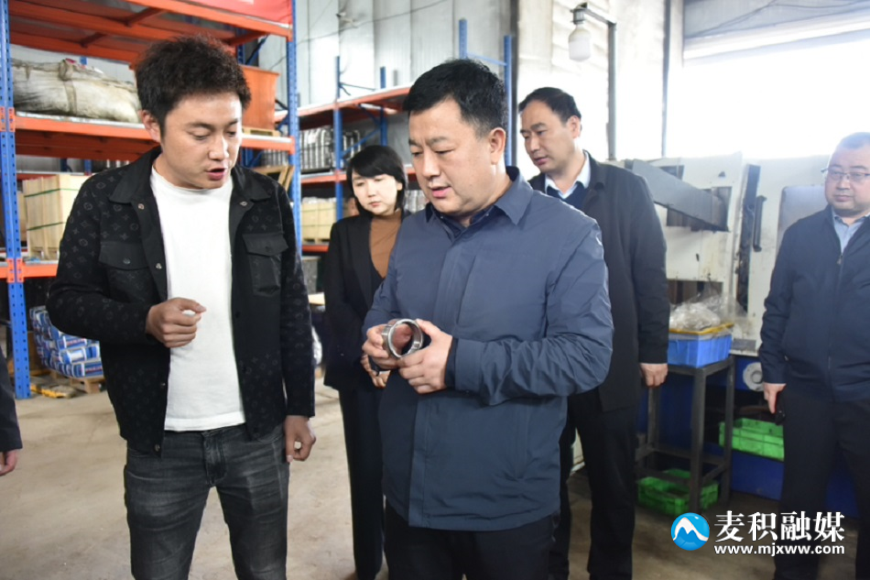 麥積區(qū)融媒體中心訊(記者 王雯 馬玉婷) 10月31日,區(qū)委副書記、區(qū)長(zhǎng)趙虎生帶領(lǐng)區(qū)直相關(guān)部門負(fù)責(zé)人調(diào)研工業(yè)企業(yè)“小升規(guī)”工作。區(qū)領(lǐng)導(dǎo)楊楊、張弘一同調(diào)研。