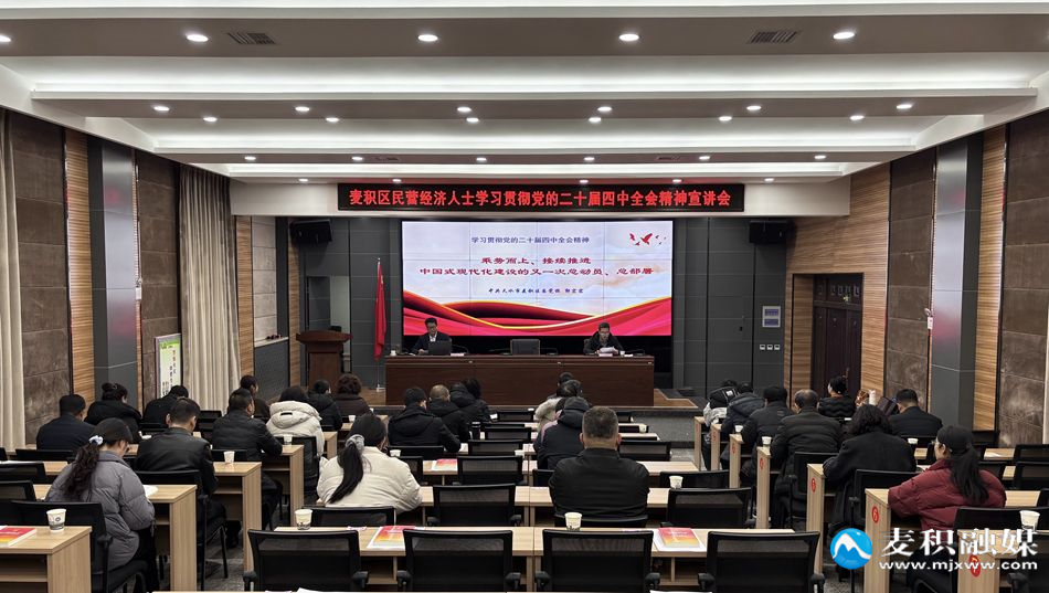 麥積區(qū)融媒體中心訊12月30日,麥積區(qū)工商聯(lián)組織召開(kāi)民營(yíng)經(jīng)濟(jì)人士學(xué)習(xí)貫徹黨的二十屆四中全會(huì)精神宣講會(huì),引導(dǎo)廣大民營(yíng)經(jīng)濟(jì)人士深刻領(lǐng)會(huì)全會(huì)精神,把握核心要義,凝聚發(fā)展共識(shí)。