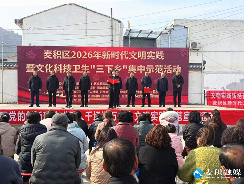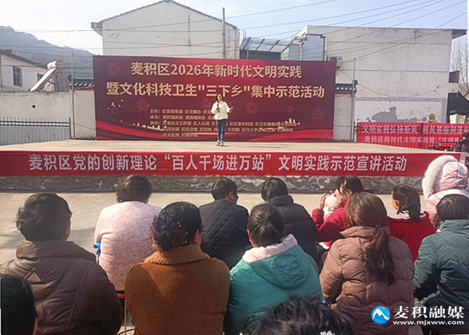 麥積區(qū)融媒體中心訊2月2日,麥積區(qū)黨的創(chuàng)新理論“百人千場(chǎng)進(jìn)萬(wàn)站”文明實(shí)踐示范宣講活動(dòng)在元龍鎮(zhèn)杜家坪村正式啟動(dòng)。該活動(dòng)旨在推動(dòng)習(xí)近平新時(shí)代中國(guó)特色社會(huì)主義思想及黨的二十屆四中全會(huì)精神在基層走深走實(shí)、見行見效。啟動(dòng)儀式與麥積區(qū)新時(shí)代文明實(shí)踐暨文化科技衛(wèi)生“三下鄉(xiāng)”示范活動(dòng)同步舉行,形成了理論宣講與惠民服務(wù)協(xié)同推進(jìn)的生動(dòng)局面。