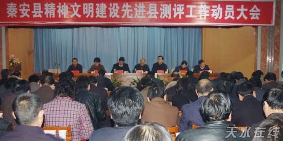 11月18日,秦安縣召開(kāi)甘肅省精神文明建設(shè)先進(jìn)縣測(cè)評(píng)工作動(dòng)員大會(huì)?h四大組織在家領(lǐng)導(dǎo)、各鄉(xiāng)鎮(zhèn)、縣直各部門、駐秦各單位主要負(fù)責(zé)人和秘書(shū)共220多人參加會(huì)議。
