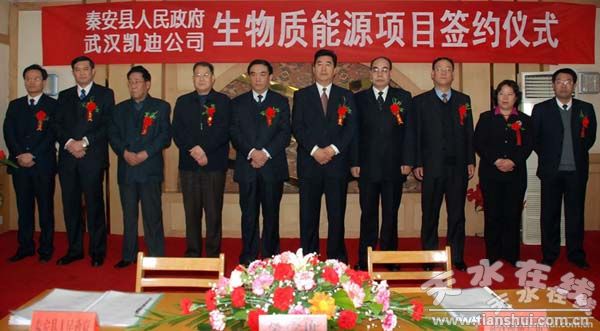 2009年2月20日,秦安縣人民政府與武漢凱迪公司在天水市迎賓館隆重舉行綜合性生物質(zhì)能源合作項(xiàng)目簽約儀式。