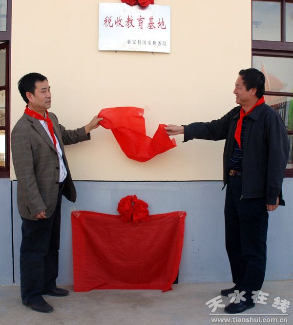 天水市國稅局局長關云峰和秦安縣常務副縣長李全明為稅收教育基地揭牌