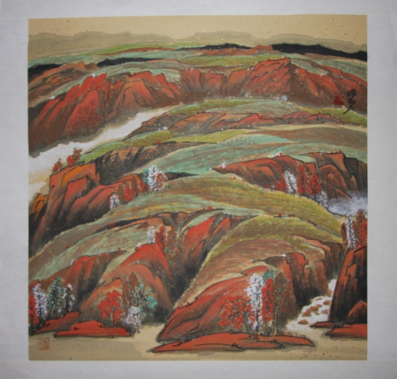 王雄熙筆下的濃墨重彩,樸素意象,匯合成一種文化主題與文化思考,又以一種山水畫的方式透示出來,這樣,使他看似平常的西部風(fēng)情,便顯示出豐厚而充實(shí)的效果,王雄熙的努力與辛苦是有成就的。