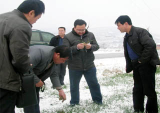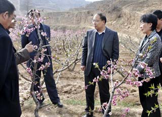 4月14日,天水市政府副市長彭鴻嘉帶領(lǐng)市農(nóng)口單位相關(guān)負責人,就近期低溫霜凍災情深入秦安縣進行調(diào)研。在秦安縣委副書記程江芬,副縣長王金珍的陪同下,彭鴻嘉一行深入到田間地頭,詳細了解了花椒、蘋果、桃、冬小麥、露地蔬菜等作物受災情況,并有針對性地提出了應對策略,要求農(nóng)業(yè)部門結(jié)合本地實際,進行分類技術(shù)指導,采取煙熏、灌水等各種有效措施加強田間管理,努力把災害造成的損失降低到最低限度。