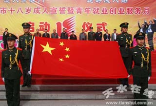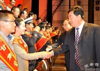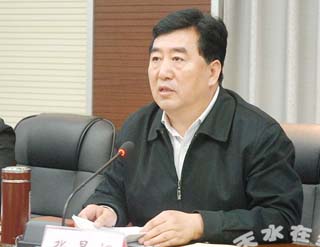 (秦安縣委常委、組織部長(zhǎng)郭海軍在行政辦公中心廣場(chǎng)為參加培訓(xùn)的村干部送行)