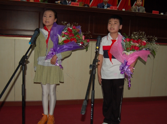 少先隊員向勞動模范獻(xiàn)詞