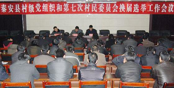 12月17日,秦安縣召開村“兩委”換屆選舉工作會(huì)議,對(duì)全縣村級(jí)黨組織和第七次村民委員會(huì)換屆選舉工作進(jìn)行全面動(dòng)員和安排部署。會(huì)議由副縣長魏世中主持,縣委常委、組織部長郭海軍作了講話,縣委組織部副部長李永忠宣讀了全縣村級(jí)黨組織和第七次村民委員會(huì)換屆選舉工作領(lǐng)導(dǎo)小組人員名單及各鄉(xiāng)鎮(zhèn)指導(dǎo)員名單、全縣村級(jí)黨組織和第七次村民委員會(huì)換屆選舉工作實(shí)施方案。各鄉(xiāng)鎮(zhèn)黨委書記、鄉(xiāng)鎮(zhèn)長、人大主席、分管副書記、鄉(xiāng)鎮(zhèn)專職組織干事,縣派駐各鄉(xiāng)鎮(zhèn)指導(dǎo)員,縣村級(jí)“兩委”班子換屆選舉工作領(lǐng)導(dǎo)小組各成員共90多人參加了會(huì)議。