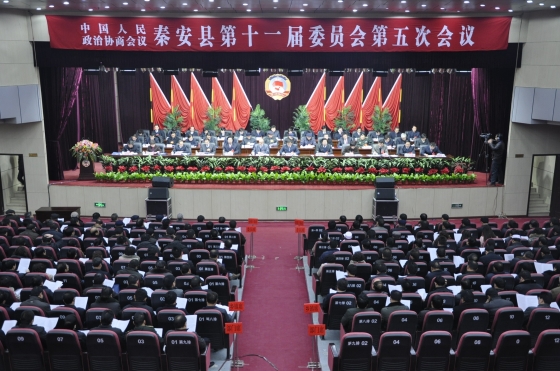 (秦安縣委外宣辦、縣政府新聞辦 馮喜成 焦繼周 楊虎成 王偉 宋一磊 報道)2011年1月8日上午,秦安縣行政中心二樓禮堂燈光璀璨、花團錦簇,主席臺正中懸掛的象征中國各族人民大團結(jié)的政協(xié)會徽在十面紅旗的簇擁下熠熠生輝。整個會場莊嚴喜慶,洋溢著和諧奮進的氣氛。上午9時,政協(xié)秦安縣第十一屆委員會第五次會議在雄壯的國歌聲中隆重開幕。