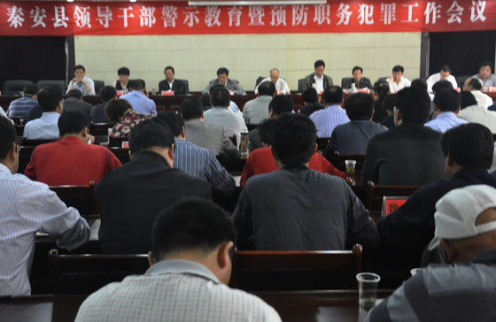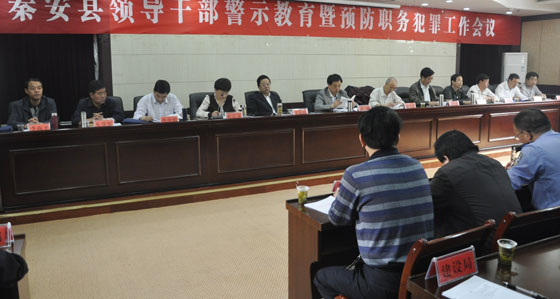 4月29日,秦安縣召開(kāi)領(lǐng)導(dǎo)干部警示教育暨預(yù)防職務(wù)犯罪工作會(huì)議?h四大組織領(lǐng)導(dǎo),各鄉(xiāng)鎮(zhèn)黨委書(shū)記、鄉(xiāng)鎮(zhèn)長(zhǎng)、紀(jì)委書(shū)記,縣直各部門(mén)主要負(fù)責(zé)人、紀(jì)委書(shū)記(紀(jì)檢組長(zhǎng)),駐秦單位主要負(fù)責(zé)人、紀(jì)委書(shū)記(紀(jì)檢組長(zhǎng))共100余人參加了會(huì)議。