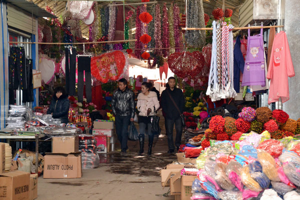 昨日上午11時(shí)許,整條映南街,車流涌動(dòng),人山人海,一家小商品批發(fā)店擠滿了前來(lái)挑選春節(jié)飾品的顧客,不到30平米的鋪面內(nèi),已被顧客圍得水泄不通,正在忙著收錢的王老板站在門口,樂(lè)呵呵地說(shuō):“現(xiàn)在生意很好,我忙不過(guò)來(lái),花錢請(qǐng)來(lái)幫忙的人,劃得來(lái)!惫P者在映南街走了一圈,發(fā)現(xiàn)近二十家喜慶飾品店全部被紅色的燈籠、對(duì)聯(lián)、貼紙等飾品填滿,生意都不錯(cuò)。