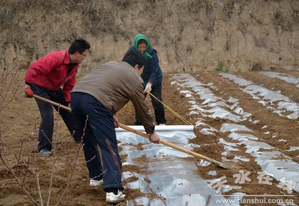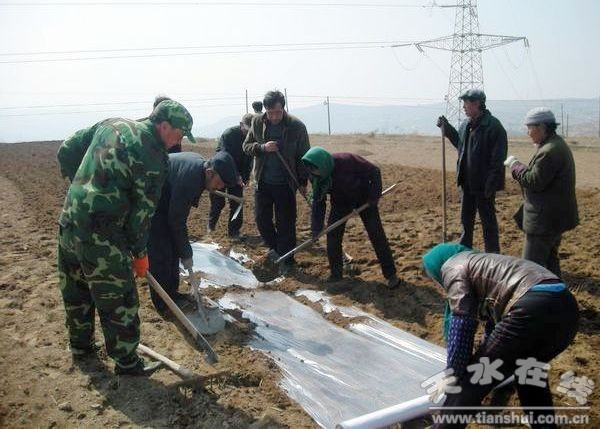 今年秦安縣把大力推廣全膜雙龍溝播技術(shù)作為科技興農(nóng)的首要任務(wù),深入推廣“梯田+節(jié)灌+林果+全膜+路網(wǎng)”五位一體的旱作農(nóng)業(yè)發(fā)展模式。為了確保完成春季頂凌覆膜的任務(wù),縣政府與各鄉(xiāng)鎮(zhèn)簽定了目標(biāo)管理責(zé)任書?h四大組織主要領(lǐng)導(dǎo)分片包干,農(nóng)業(yè)局領(lǐng)導(dǎo)分片具體抓,鄉(xiāng)鎮(zhèn)領(lǐng)導(dǎo)干部保存,一般干部包戶,縣、鄉(xiāng)技術(shù)人員包點(diǎn)的責(zé)任制!霸纭弊之(dāng)頭,早規(guī)劃,早安排,早部署,早行動(dòng),按照“解凍一片,覆膜一片”的步驟,做到連片種植,規(guī)模種植,打造好精品示范點(diǎn)。縣農(nóng)技、種子、農(nóng)機(jī)、供銷等部門抓緊調(diào)運(yùn)儲(chǔ)備好化肥、農(nóng)膜、種子、農(nóng)藥和農(nóng)機(jī)具等春耕農(nóng)資,為頂凌覆膜打好基礎(chǔ),確保頂凌覆膜面積保質(zhì)保量完成。同時(shí),為抓住今春土壤墑情較好的有利時(shí)機(jī),秦安縣農(nóng)業(yè)局把頂凌覆膜工作作為當(dāng)前春耕生產(chǎn)的頭等任務(wù)來抓,把做好當(dāng)前頂凌覆膜工作與正在開展的“聯(lián)村聯(lián)戶,為民富民”行動(dòng)緊密結(jié)合起來,選派200名農(nóng)技骨干組成17個(gè)工作隊(duì),深入17個(gè)鄉(xiāng)鎮(zhèn)的田間地頭,協(xié)助鄉(xiāng)鎮(zhèn)落實(shí)頂凌覆膜地塊面積、抓好春季農(nóng)業(yè)生產(chǎn)物資調(diào)運(yùn)、搞好技術(shù)培訓(xùn)。重點(diǎn)抓好頂凌覆膜示范點(diǎn)建設(shè),從而加快了各示范點(diǎn)頂凌覆膜進(jìn)度,提高了覆膜的質(zhì)量。