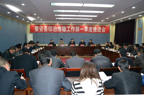 3月29日下午,秦安縣召開(kāi)第一季度綜治維穩(wěn)工作推進(jìn)會(huì),聽(tīng)取各鄉(xiāng)鎮(zhèn)第一季度綜治維穩(wěn)工作落實(shí)情況匯報(bào),安排部署下一階段的工作任務(wù)?h綜治辦、公安局、司法局、縣委防范辦負(fù)責(zé)人和各鄉(xiāng)鎮(zhèn)分管領(lǐng)導(dǎo)、司法所長(zhǎng)、綜治專(zhuān)職副主任共50多人參加會(huì)議,縣委常委、政法委書(shū)記丁曉來(lái)主持會(huì)議并講話。