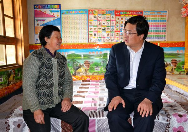 在胡存娣家中,王東紅坐在炕頭上,與胡存娣親切交談,噓寒問暖,詳細詢問家庭收入及目前生活中的主要困難和今后脫貧致富的打算。王東紅說:“這次我來是了解基本情況,以后我還要經(jīng)常來幫助你們理清致富思路,發(fā)展富民產(chǎn)業(yè),直到你們家的生活水平得到提高,真正過上小康生活!蓖ㄟ^一番交談后得知,她家有6口人(胡存娣夫婦、女兒和女婿及兩個外孫),經(jīng)濟來源主要靠女婿打工為主,生活困難。王東紅說:“你們老兩口一定要把女婿當(dāng)做自己的兒子一樣看待,家庭和睦了才會有大發(fā)展,你們一定要樹立致富奔小康的信心,通過咱們的共同努力,努力改善家庭生產(chǎn)生活條件,成為村上的小康戶!