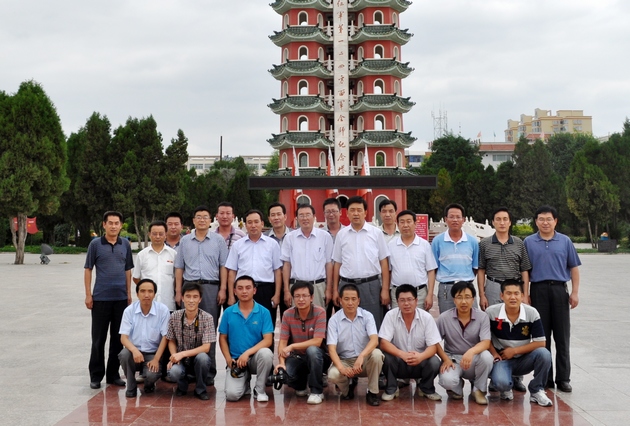 (在紅軍會寧會師紀念塔前合影 )