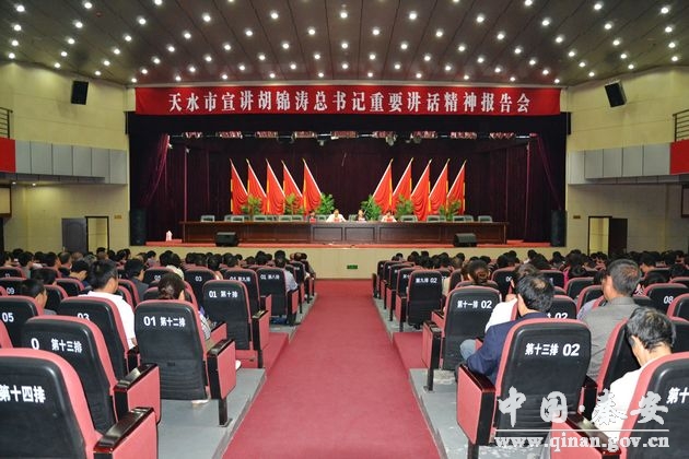 9月4日上午,秦安縣行政中心二樓禮堂內(nèi)座無(wú)虛席,市委宣講團(tuán)宣講胡錦濤總書(shū)記在省部級(jí)主要領(lǐng)導(dǎo)干部專題研討班開(kāi)班儀式上重要講話精神首場(chǎng)報(bào)告會(huì)在這里隆重舉行。市委宣講團(tuán)團(tuán)長(zhǎng)、市社科聯(lián)副主席張勃林,市政府研究室副主任、研究員董世玉,市委黨校黨史黨建研究室副教授高建蘭出席宣講報(bào)告會(huì)。