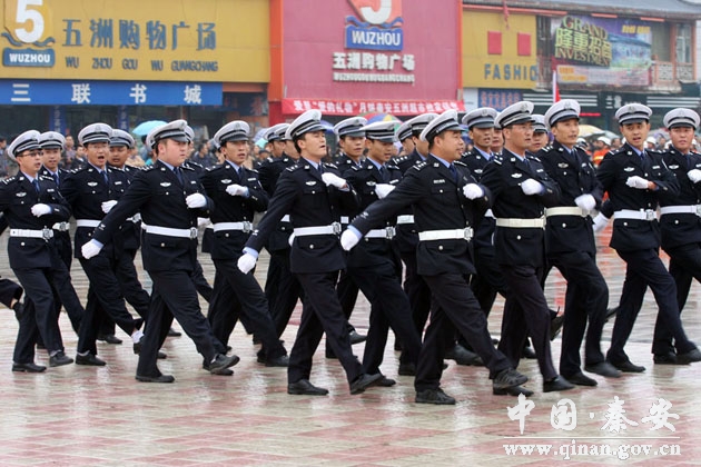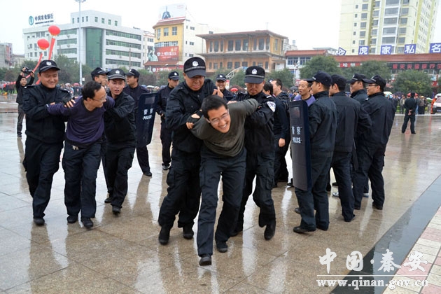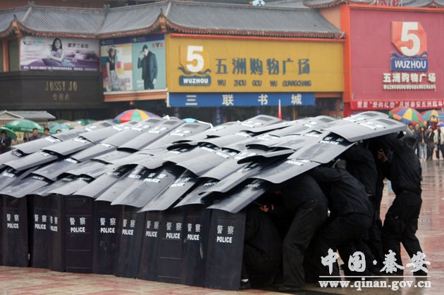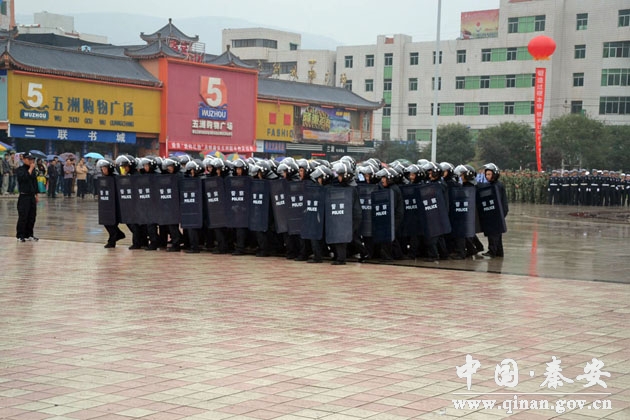 此次演練主要包括隊形隊列表演、交通指揮手勢表演、警務(wù)實戰(zhàn)技能展示、警棍盾牌操表演、防爆隊形表演、群體性事件現(xiàn)場處置演練、救援演練共七項科目?h公安局、檢察院、法院、司法局、綜合執(zhí)法局、武警中隊交警對、消防大隊、西川鎮(zhèn)等單位參加了演練。整場演練活動內(nèi)容豐富、秩序井然、環(huán)環(huán)緊扣。通過演練,全面檢驗了秦安縣應(yīng)急處置、反恐維穩(wěn)的組織協(xié)調(diào)、迅速反應(yīng)能力,充分展示了全縣處突應(yīng)急隊伍訓練成果,大大提升了處突應(yīng)急隊伍的實戰(zhàn)水平。