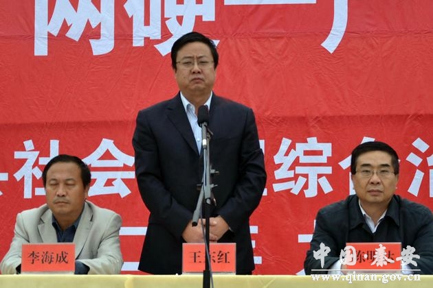 為了進一步加強處置突發(fā)性事件工作,提高應(yīng)對處置突發(fā)性事件的能力,更好地維護人民群眾生命財產(chǎn)安全和社會公共秩序,促進全縣社會和諧穩(wěn)定,集中展示“兩硬一嚴”活動以來政法系統(tǒng)取得的成果,9月20日,秦安縣在興國文化廣場隆重舉行應(yīng)急處突演練暨政法系統(tǒng)“兩硬一嚴”成果集中展示活動。邀請市委政法委常務(wù)副書記陳明達,市公安局黨委副書記、常務(wù)副局長李海成,市委政法委助理調(diào)研員杜澎,市維穩(wěn)辦副主任科員郝仿指導本次活動。