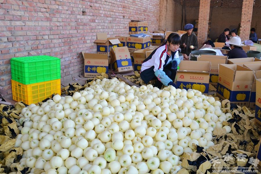 時(shí)下,正值蘋果銷售的黃金季節(jié),各地客商紛沓而來(lái),秦安蘋果再度成為“搶手貨”。在各大果品市場(chǎng),隨處可見(jiàn)熱鬧紅火的交易場(chǎng)面,一車車精包裝的果子正在滿載起運(yùn),銷往全國(guó)各地……