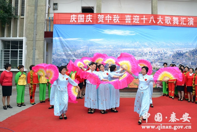 歡聲笑語慶國慶,載歌載舞賀中秋。為慶祝中秋佳節(jié)和建國63周年,營造熱烈、歡樂、文明、和諧的節(jié)日文化氛圍,豐富秦安民眾的精神文化生活,在“雙節(jié)”黃金周期間,秦安縣文化館歌舞飄揚,花團錦簇,展演了一系列豐富多彩的文化活動,包括喜迎“十八大”圖片展、秦安縣國家省市級非物質(zhì)文化遺產(chǎn)圖片展、安慶祥先生書法展、歌舞匯演等。本次系列文化活動于9月28日全面開展,一直持續(xù)至10 月6日。