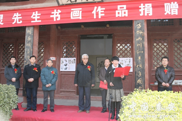 11月23日上午,秦安縣博物館舉行邵靈書畫作品捐贈儀式,縣委副書記、縣長程江芬,縣人大副主任魏千乙,縣政府副縣長郭雙江,縣政協(xié)副主席馬振寰;縣直有關(guān)部門及文化文物系統(tǒng)全體干部職工及廣大書畫愛好者共100多人出席儀式。捐贈儀式由縣政府副縣長郭雙江主持,縣人大副主任魏千乙為邵靈頒發(fā)了“秦安縣博物館收藏證書”。