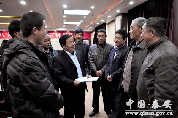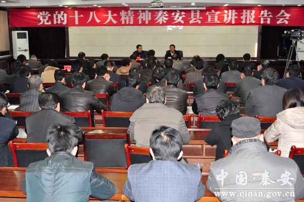 11月23日,在全縣上下深入學(xué)習(xí)貫徹黨的十八大精神的關(guān)鍵時(shí)期,市委組織部黨代表聯(lián)絡(luò)科科長(zhǎng)曹興強(qiáng)帶隊(duì),天水市唯一的十八大代表、麥積區(qū)伯陽(yáng)鎮(zhèn)黨委副書記、曹石村黨總支書記劉田家蒞臨秦安縣,專題宣講黨的十八大精神?h四大組織在家領(lǐng)導(dǎo)及其他縣級(jí)干部,縣直各部門黨組負(fù)責(zé)人,各鄉(xiāng)鎮(zhèn)黨委書記,教育、衛(wèi)生、非公企業(yè)、兩新組織負(fù)責(zé)人,部分省市縣黨代表,興國(guó)、西川、王尹、劉坪、葉堡等部分村黨支部書記共計(jì)130多人聆聽了宣講報(bào)告。報(bào)告會(huì)由秦安縣委副書記裴貴軍主持。