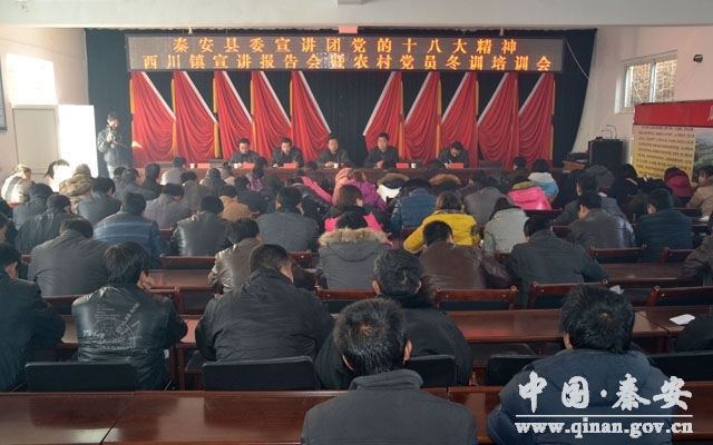 為了進(jìn)一步學(xué)習(xí)貫徹黨的十八大精神,12月6日, 秦安縣委宣講團(tuán)走進(jìn)西川鎮(zhèn)宣講十八大精神?h委宣講團(tuán)副團(tuán)長、縣委宣傳部副部長、文明辦主任王建祥,宣講團(tuán)副團(tuán)長、縣直機(jī)關(guān)工委副書記惠文絢,宣講團(tuán)成員,西川鎮(zhèn)班子成員、鄉(xiāng)村干部、站點(diǎn)管理員、大學(xué)生村官共200多人參加宣講會。