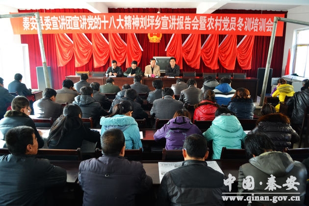12月7日下午,秦安縣委宣講團(tuán)在劉坪鄉(xiāng)政府舉行宣講黨的十八大精神報(bào)告會(huì)?h委宣講團(tuán)第二宣講組副組長、縣委黨校常務(wù)副校長馬永強(qiáng),縣文明辦,縣黨員電化教育室負(fù)責(zé)人出席了會(huì)議,鄉(xiāng)機(jī)關(guān)全體干部職工、鄉(xiāng)直各單位負(fù)責(zé)人、各村支書、主任共計(jì)100余人參加了會(huì)議。