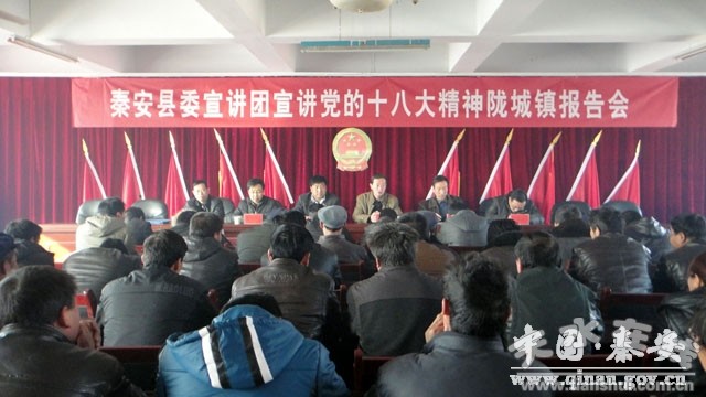 為了進(jìn)一步貫徹落實(shí)好黨的十八大精神,加強(qiáng)農(nóng)村黨員干部黨性鍛煉,調(diào)動(dòng)廣大黨員干部積極性。12月8日,秦安縣委宣講團(tuán)走進(jìn)隴城鎮(zhèn)宣講黨的十八大精神。隴城鎮(zhèn)班子成員、鄉(xiāng)村干部等共100多人參加了宣講會(huì)。
