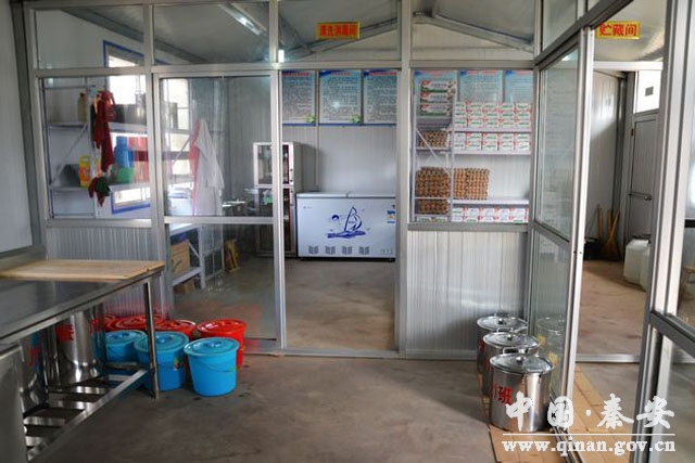 同樣是在實(shí)施農(nóng)村義務(wù)教育學(xué)生營(yíng)養(yǎng)改善計(jì)劃項(xiàng)目的秦安三中,這里窗明幾凈,操作間,冷藏間,消毒間等基礎(chǔ)設(shè)施一應(yīng)俱全,布局合理。不僅如此,該校還創(chuàng)出了自己獨(dú)具特色的營(yíng)養(yǎng)改善計(jì)劃管理措施和用餐制度。
