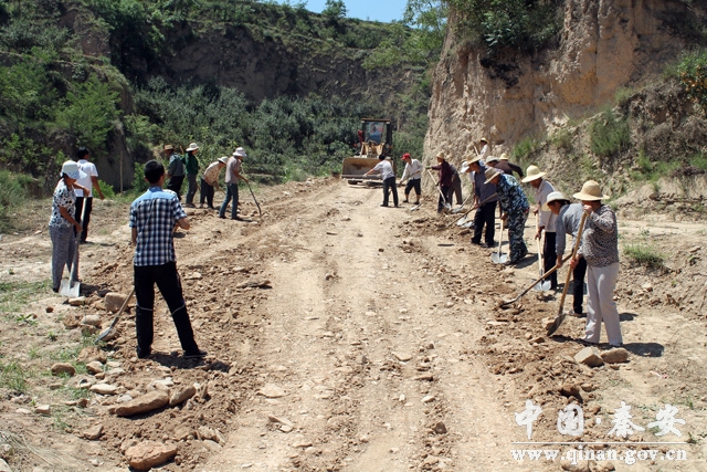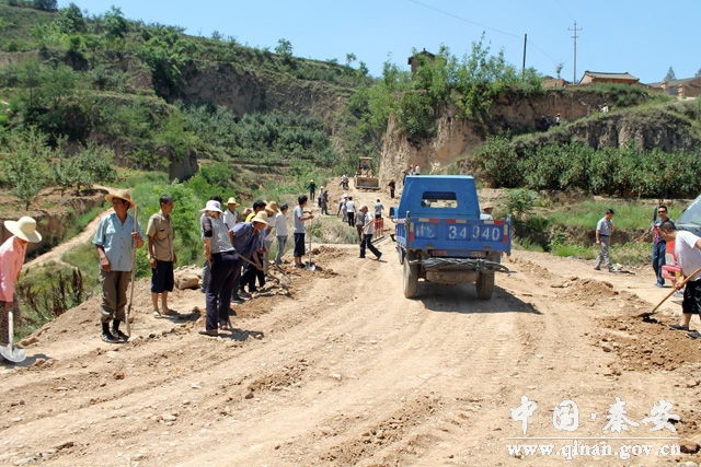 時值盛夏,驕陽似火。烈日炙烤著大地,但在秦安縣郭嘉鎮(zhèn)由寺咀村通往馬峽村的通村公路上,100百名村民正在村支書楊全義的帶領(lǐng)下,手拿鐵锨,頭頂烈日,耐著酷暑,熱火朝天地鋪設(shè)著通村道路。老人楊來喜指著這場面介紹說,這是改革開放以來,全村最大規(guī)模的一次集體公益勞動。
