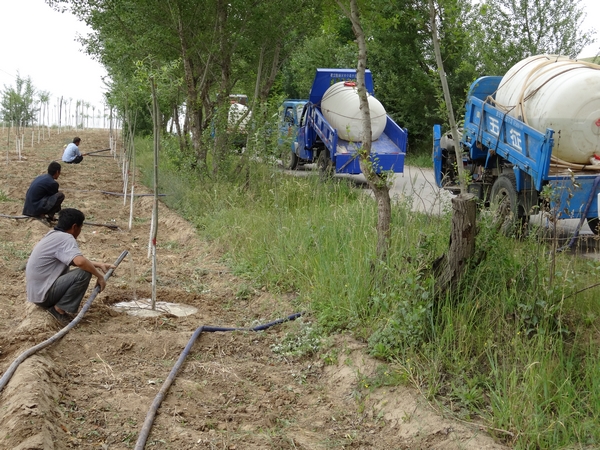 合理規(guī)劃,沿線貫通。按照因地制宜、適地適樹和綠化、美化相結(jié)合的原則,以310國(guó)道、清水河沿線“百里生態(tài)文化長(zhǎng)廊”為主軸,以通鄉(xiāng)路、通村路、產(chǎn)業(yè)路為支線,逐路段、逐地塊、逐樹種進(jìn)行調(diào)研規(guī)劃,確定“一軸三線”、重點(diǎn)示范、全面推進(jìn)的工作思路,實(shí)行精細(xì)化整地,采取“統(tǒng)一調(diào)苗、統(tǒng)一指導(dǎo)規(guī)劃、統(tǒng)一放線打坑、統(tǒng)一定桿定行、統(tǒng)一栽植涂白、統(tǒng)一起壟打畦、統(tǒng)一澆水保苗”的“七統(tǒng)一”的方法措施,對(duì)土壤質(zhì)量差的區(qū)域全部進(jìn)行換土填方,開挖定植穴,并積極推行截干造林、大坑深埋、帶大土球栽植等干旱造林技術(shù),采用“一埋二提三踏實(shí)”的技術(shù)標(biāo)準(zhǔn)進(jìn)行栽植。從苗木起運(yùn)、分發(fā)、栽植、澆水、管護(hù)等每個(gè)環(huán)節(jié),都由林業(yè)部門領(lǐng)導(dǎo)和技術(shù)人員全程跟蹤檢查,嚴(yán)把苗木質(zhì)量和栽植技術(shù)關(guān),對(duì)驗(yàn)收不合格的及時(shí)返工,確保栽植一片、成活一片。至目前,全縣已完成公路行道樹綠化330公里,栽植柳樹、楊樹、云杉、國(guó)槐等苗木26萬多株。