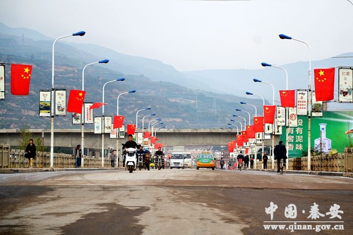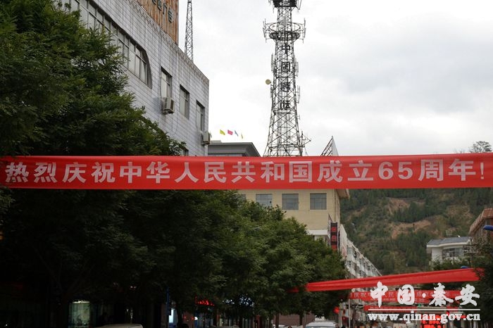 為了營造國慶65周年濃厚氛圍,秦安縣按照熱烈喜慶、歡樂祥和”的總體要求,加強(qiáng)組織領(lǐng)導(dǎo),強(qiáng)化工作措施,廣泛宣傳動員,切實加大城市凈化、美化、亮化、綠化工作力度,精心組織開展文化慶;顒,目前城區(qū)街頭橫幅高懸、國旗飄揚、霓虹閃爍,處處洋溢著歡樂、喜慶、祥和的濃厚節(jié)日氣氛。