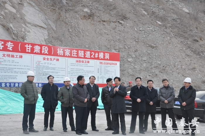2月12日,天水市委常委、副市長張明泰深入寶蘭客專秦安段建設(shè)現(xiàn)場,慰問堅(jiān)守在一線的施工人員。市政府副秘書長米萬平,市發(fā)改委主任楊文元、副主任王天錄,秦安縣委常委、常務(wù)副縣長任佩光,寶蘭客專天水指揮部總指揮王濤、副指揮楊總峰,中鐵十七局寶蘭客專項(xiàng)目部甘肅段副經(jīng)理趙金華陪同。