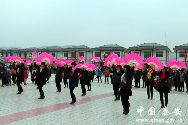 今年春節(jié),秦安農(nóng)民過年的“文化味”更濃。近日,筆者在蓮花鎮(zhèn)桑川村看到,一群婦女正隨著音樂的響起,開始有節(jié)奏地邁動雙腿,舒展身姿,跳起來廣場舞,大家跳的起勁,觀眾拍手叫絕,表演者不時拿著扇子上下飛舞,中間還穿插靈活的腳步舞蹈。不遠處,一場籃球比賽正在熱鬧進行,大家你搶我爭,好不熱鬧,音樂聲、笑聲久久地回蕩在山村上空。