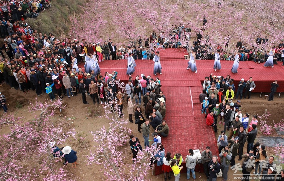 (數(shù)萬人游覽“中國美麗田園——秦安何灣桃花景觀”)