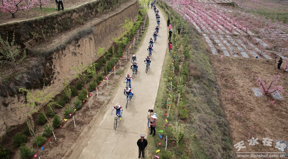 (圖為中國美麗田園——秦安何灣桃園首屆山地自行車騎行比賽活動現(xiàn)場)