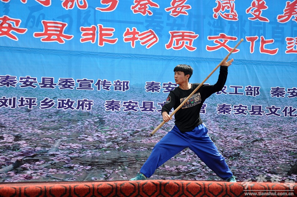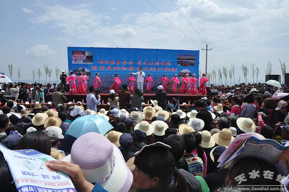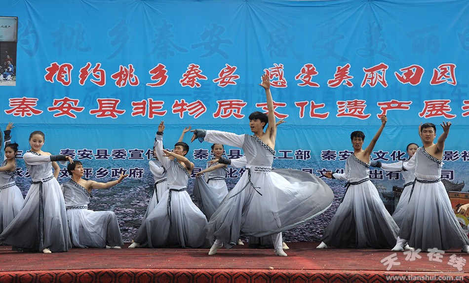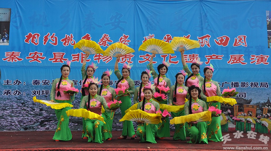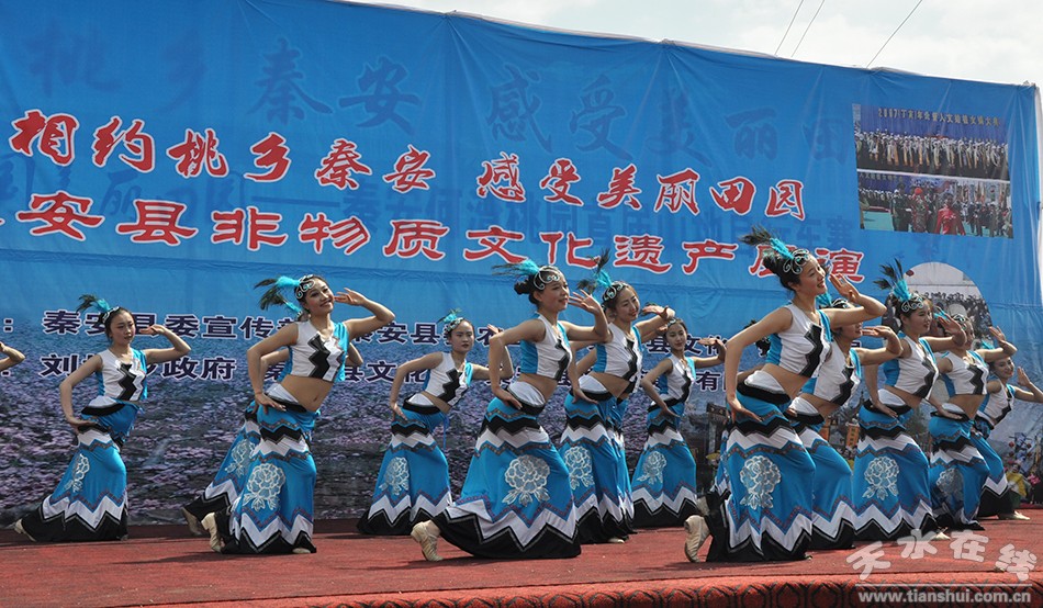4月19日,秦安縣在“中國(guó)美麗田園·秦安何灣桃花景觀”舉行非物質(zhì)文化遺產(chǎn)展演。
