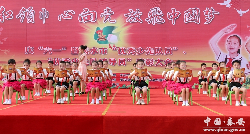 秦安縣委副書記、縣長程江芬在致辭中說,少年兒童是祖國的未來,民族的希望。長期以來,秦安縣委、縣政府始終高度重視少年兒童引導教育工作,堅持把培育 “四好少年”作為教育工作的立足點和著力點,加強組織領導,加大師資投入,強化教育教學,注重全面發(fā)展。今天,“紅領巾心向黨,放飛中國夢”慶“六一” 暨天水市“優(yōu)秀少先隊員”、“優(yōu)秀少先隊輔導員”表彰大會在秦安縣舉行,既是對我縣少年兒童工作的關心和支持,更是對全縣少年兒童工作的鞭策和鼓舞,希望全縣教育部門和共青團、少先隊以這次活動為契機,進一步開拓思路,延伸手臂,積極工作,促進全縣少年兒童教育工作再上新水平。