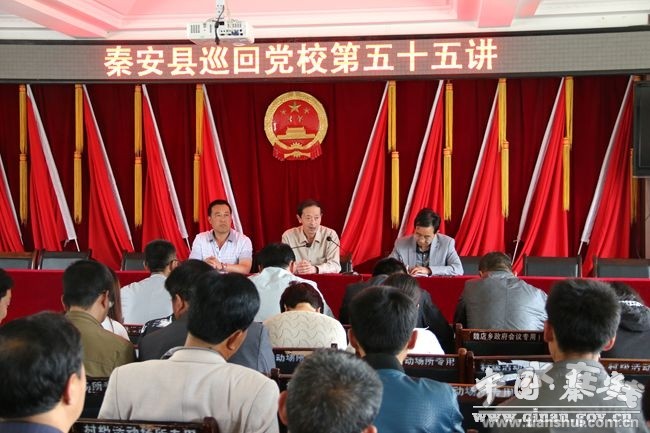 5月20日至27日,秦安縣“巡回黨!钡52-57講分別在云山鄉(xiāng)潘河村、郭嘉鎮(zhèn)暖泉村、安伏鄉(xiāng)姬洼村、魏店鄉(xiāng)機關、王窯鄉(xiāng)呂山村、王鋪鄉(xiāng)高灣村開展培訓。至此,縣“巡回黨!钡谌喤嘤柸拷Y束。