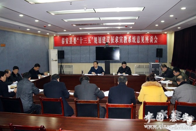 12月22日,秦安縣委召開“十三五”規(guī)劃建議征求宣教系統意見座談會,廣泛征求宣教系統各部門、各單位負責人對縣委制定“十三五”規(guī)劃建議的意見建議?h委常委、宣傳部長徐東明主持會議并講話。