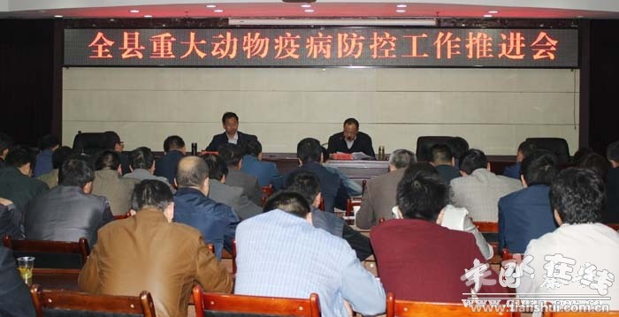 4月19日,秦安縣召開重大動物疫病防控工作推進(jìn)會?h委常委、副縣長郭雙江,副縣長王玉安,各鄉(xiāng)鎮(zhèn)長和畜牧獸醫(yī)站長,縣直有關(guān)部門、駐秦有關(guān)單位主要負(fù)責(zé)人參加了會議。
