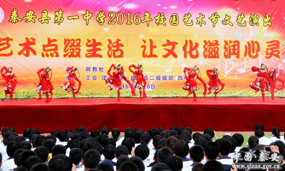 為了豐富校園文化生活,大力推進(jìn)素質(zhì)教育,營造積極、健康、向上的校園人文環(huán)境,促進(jìn)師生身心健康,5月28日下午,秦安縣第一中學(xué)以“用藝術(shù)點(diǎn)綴生活·讓文化滋潤心靈”為主題的2016年校園藝術(shù)節(jié)文藝演出在學(xué)校田徑場舉辦。廣大師生們載歌載舞,展示了才藝,張揚(yáng)了個(gè)性,活躍了校園文化氛圍。