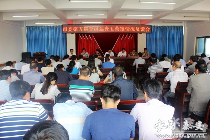 按照市委巡查組工作領(lǐng)導(dǎo)小組的安排,7月14日,天水市委第五巡查組向秦安縣五營(yíng)鎮(zhèn)反饋情況。在當(dāng)天上午召開的巡查組情況反饋會(huì)上,市委巡查組副組長(zhǎng)、市衛(wèi)計(jì)委紀(jì)委書記成科峰傳達(dá)全市黨風(fēng)廉政建設(shè)第二輪巡查工作匯報(bào)會(huì)上的講話精神并代表巡查組向秦安縣五營(yíng)鎮(zhèn)領(lǐng)導(dǎo)班子反饋巡查情況。