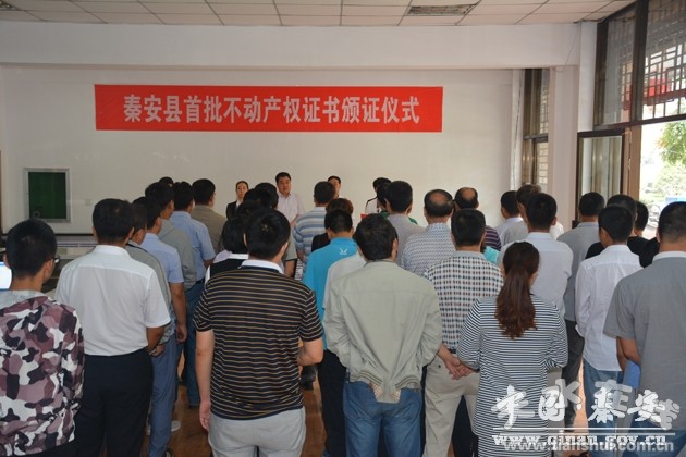 。ǹh委副書記、縣長程江芬頒發(fā)秦安縣首本不動產權證書)